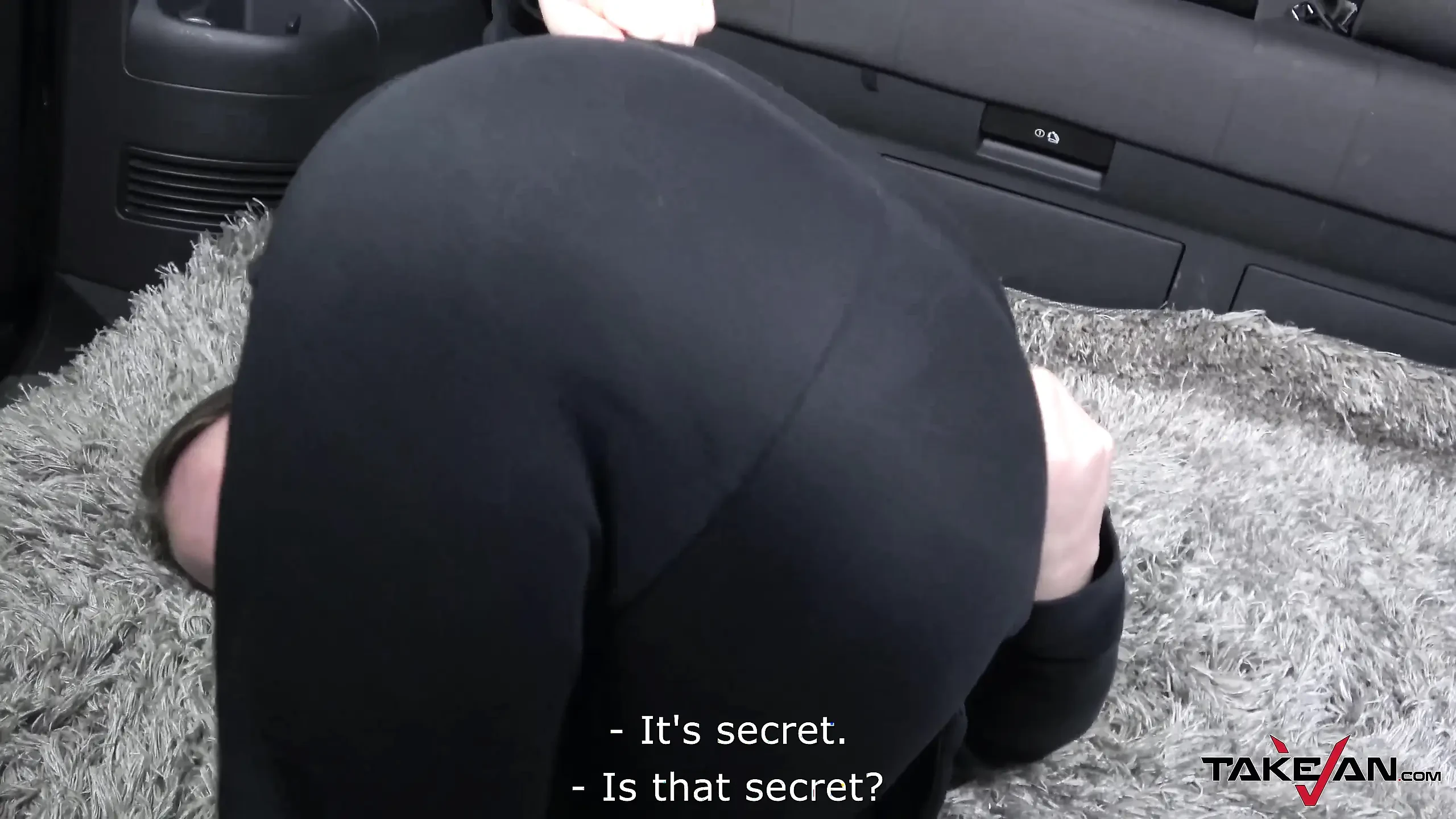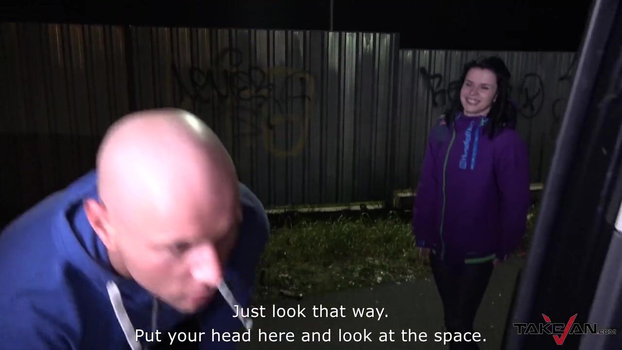 Slender tramp is shaking her petite melons on a huge knob in the van