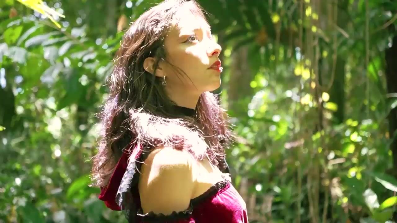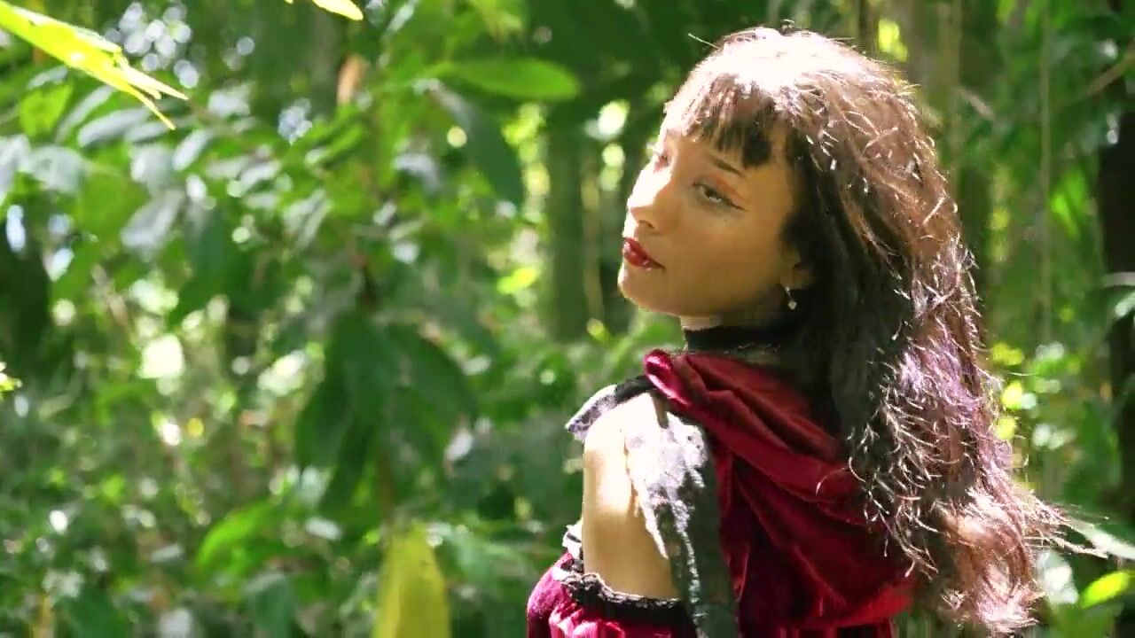 Little Red Riding Hood walking alone in the forest