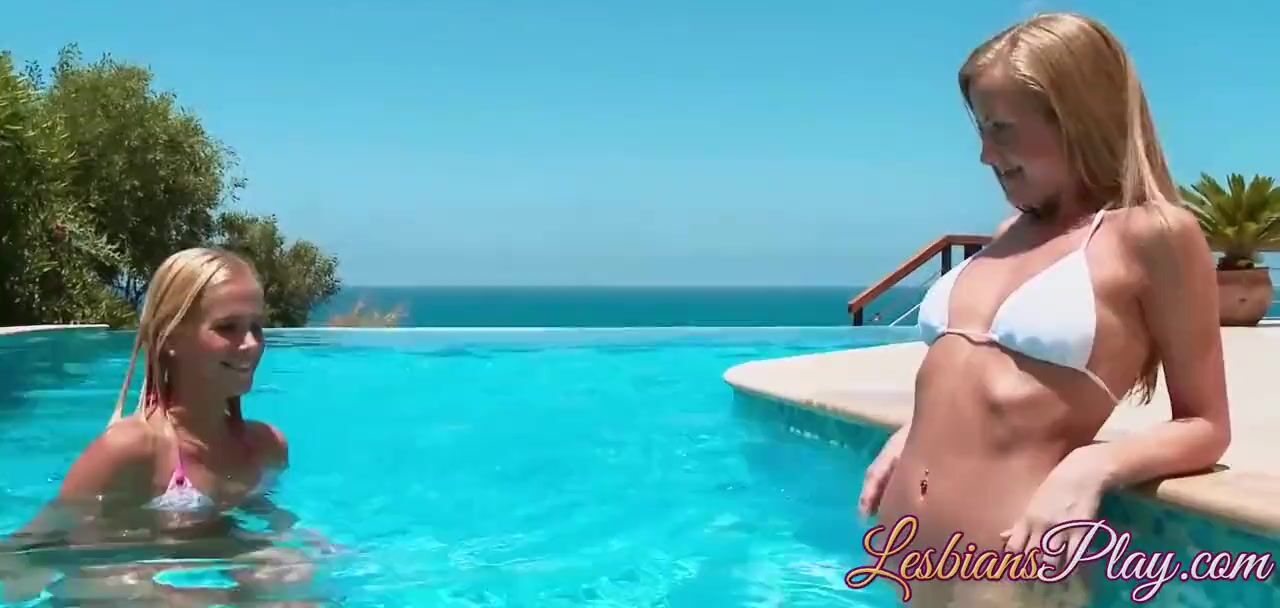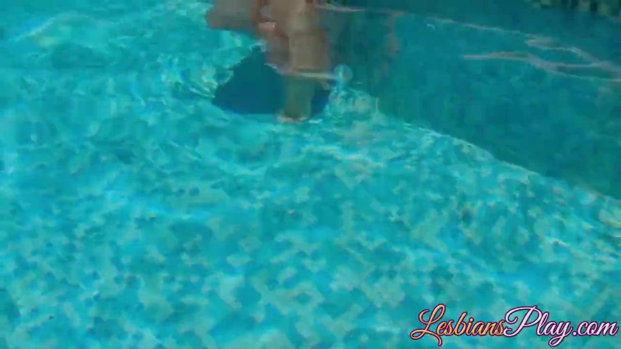Beautiful young lesbians pleasing pussies at an outdoor pool