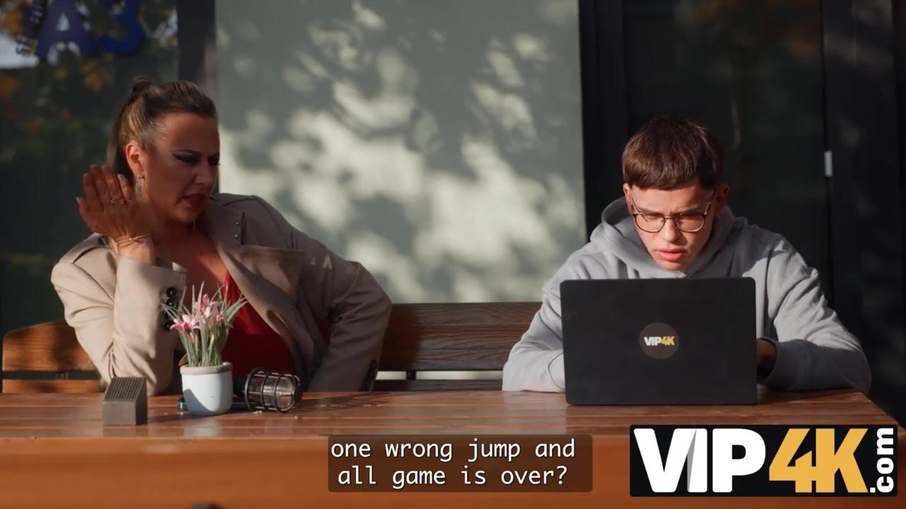 VIP4K. Aged woman with large natural bazookas tempted a youthful programmer