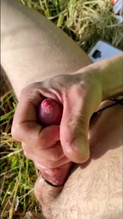 outdoor elektro stimulation large wang head in the forest