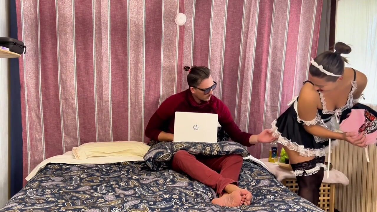 La domestica porca vuole succhiare il cazzo del suo capo-dialoghi italiano