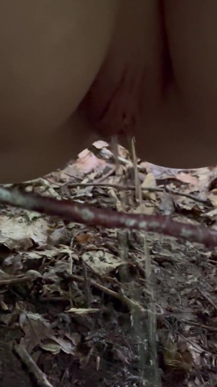 Pissing in the forest, see her gorgeous stream and hirsute landing undress twat