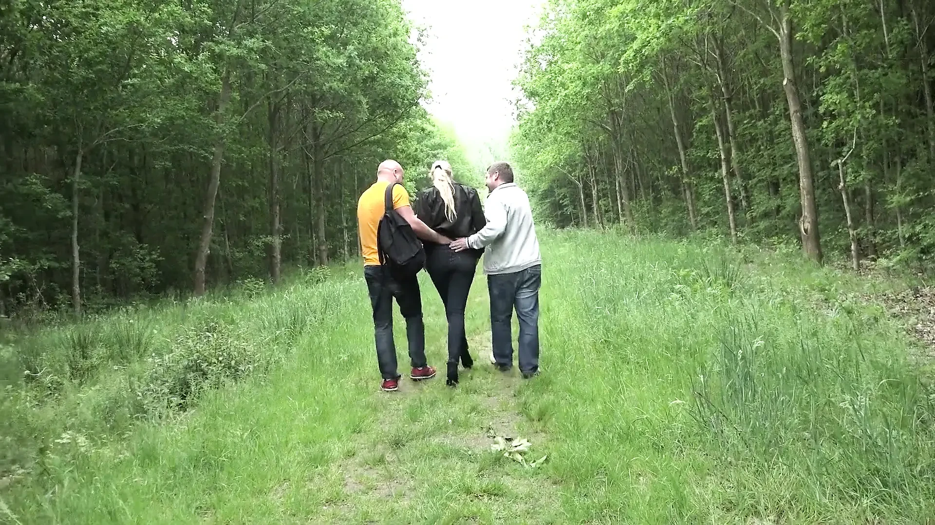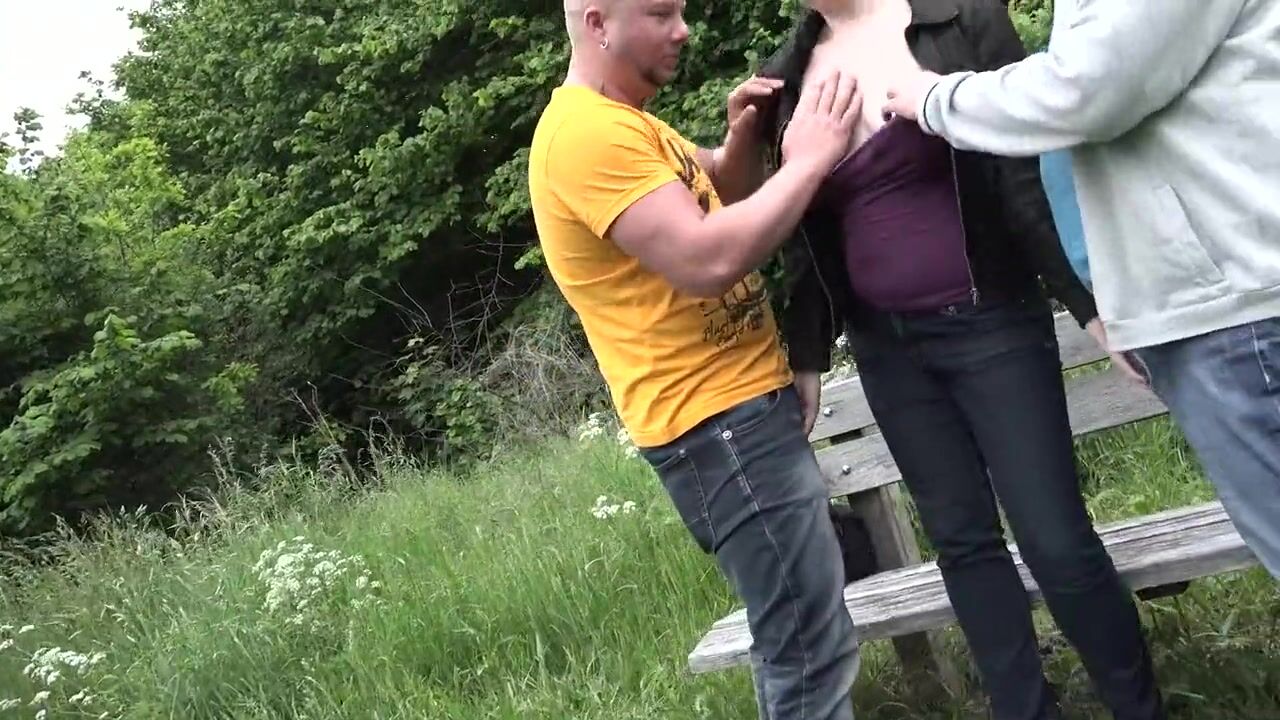 Golden-haired sucks 2 jocks then gets screwed to spunk flow in the bushes