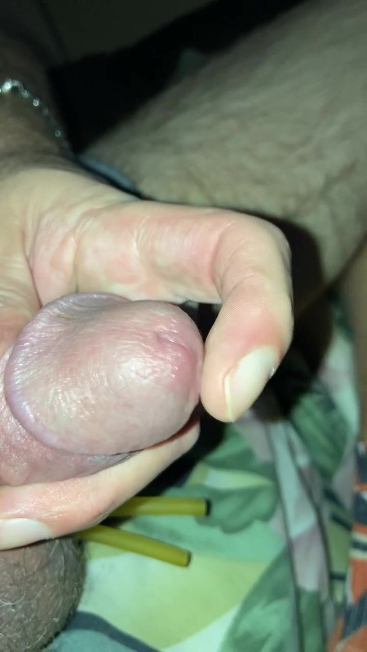 Squeezing and smearing a drop of precum, edging my cockhead gently
