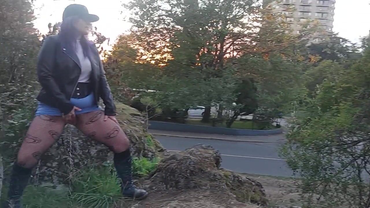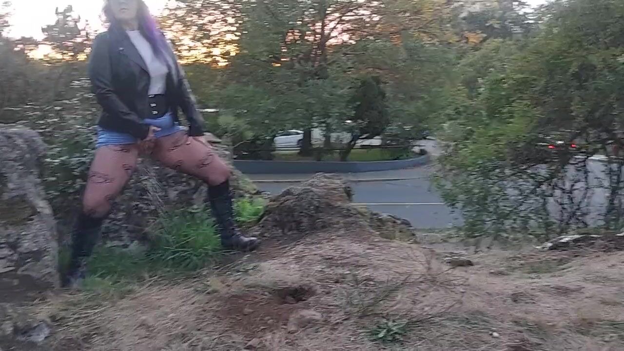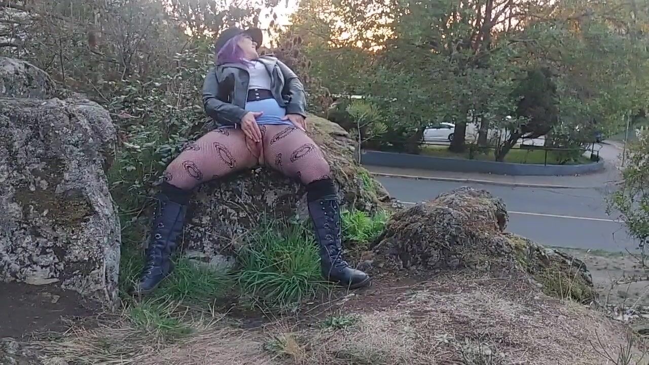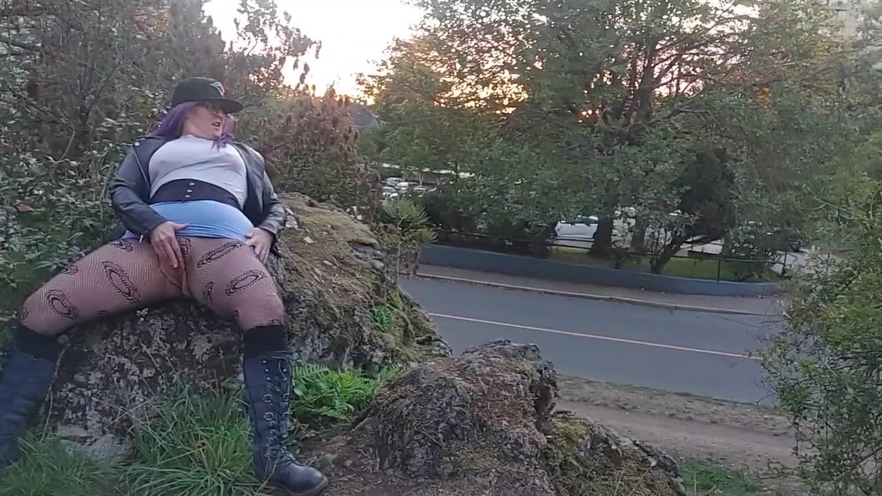 mother I'd like to fuck with blue hair rubs juicy vagina outside