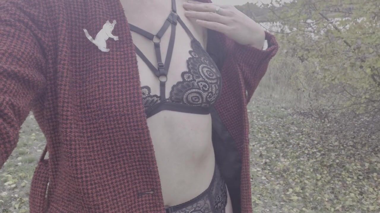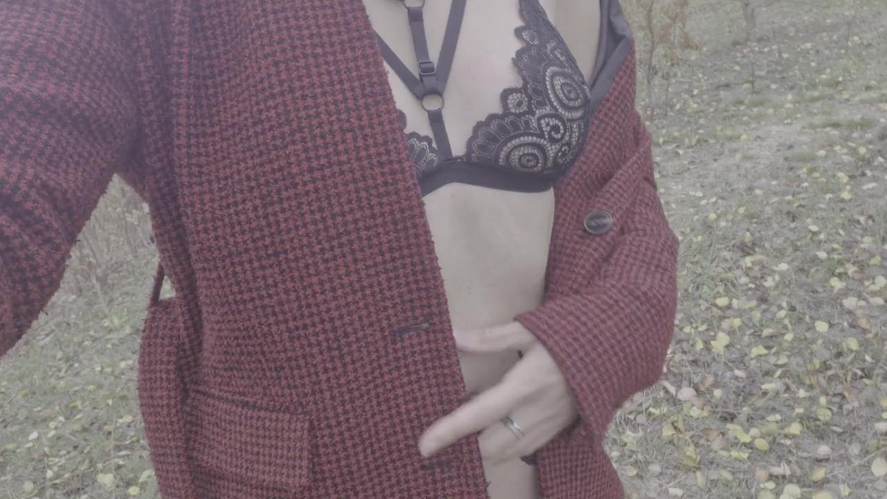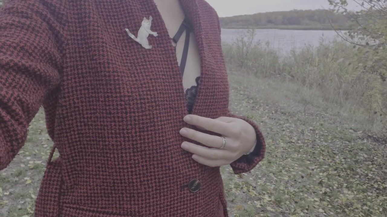 Autumn erotica. Hawt beauty strips and walks near the lake