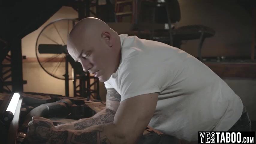 Large tits curvy Latin babe teen gets pounded by a large dong mechanic in his garage