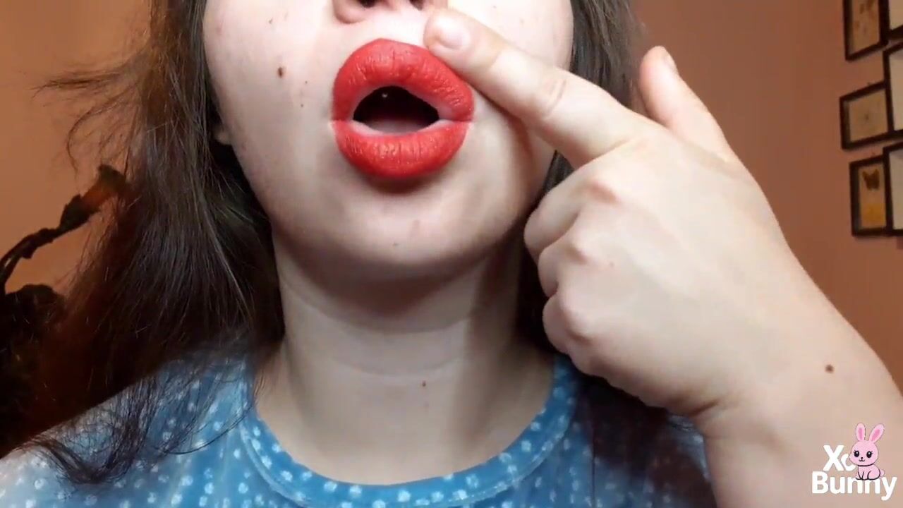 Natural lips with red lipstick smokin' a cigarette in close up