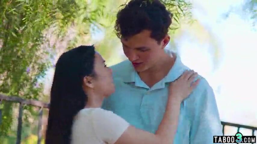 Tiny titted oriental teen enjoying her lovers large penis