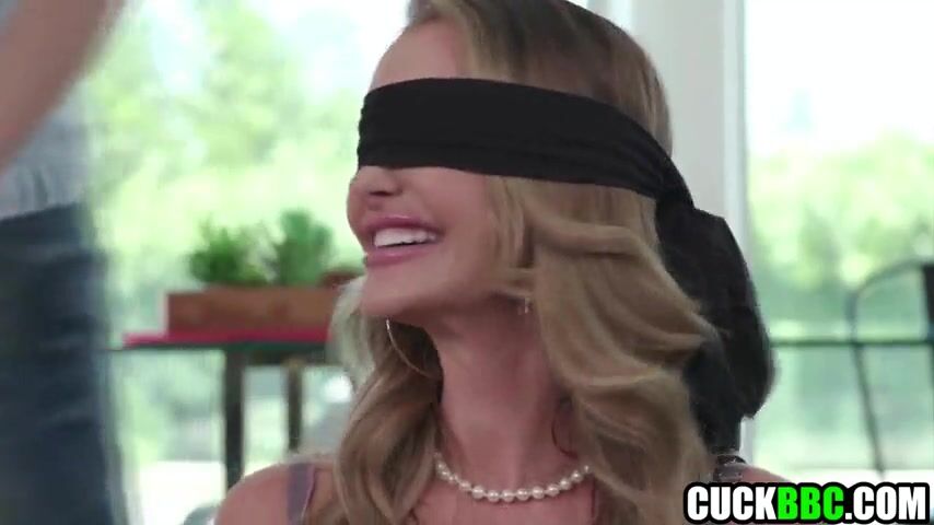 Cuck Blindfolds Wife To Surprise Her With Large Ebony Ramrod