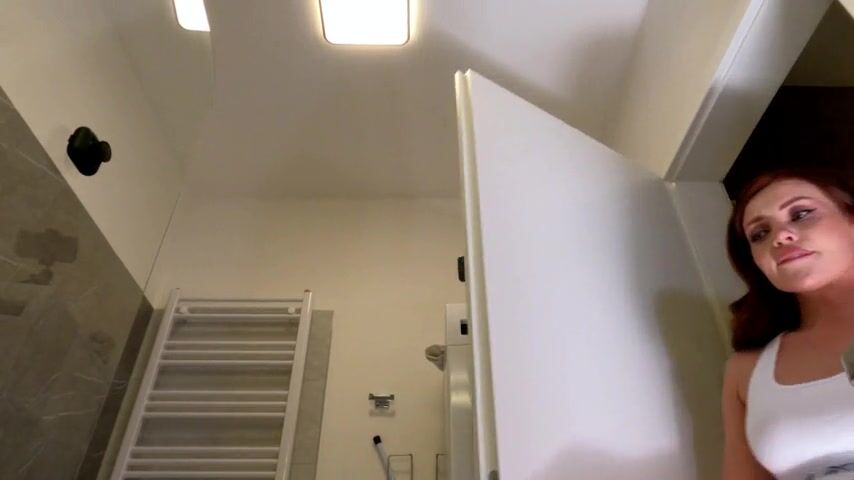 Satin pants and fishnet nylons are favourite hot underware set of this housewife with red miniskirt in the baths