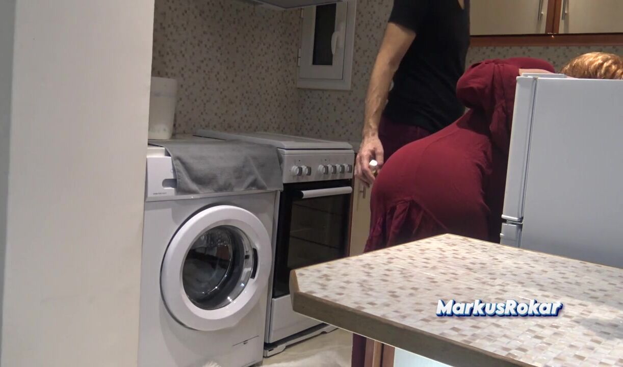 Stepmom in Kitchen Told NO Sex! - Allows Stepson Solely Wanking & Spunk flow on her Obese Booty