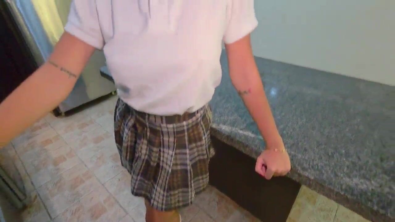 A glamorous student in uniform lets her stepfather have sex with her.