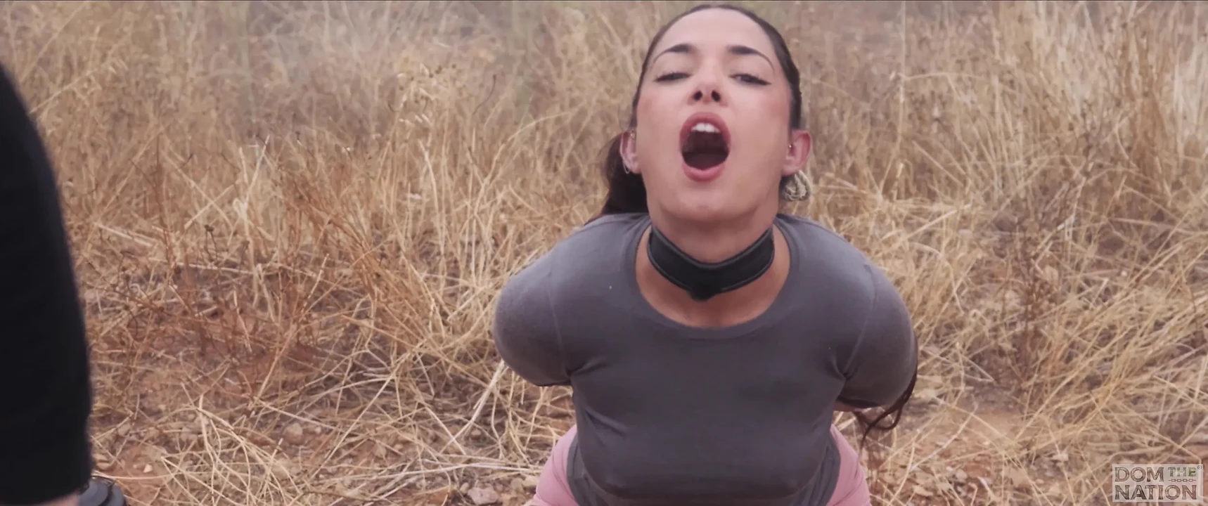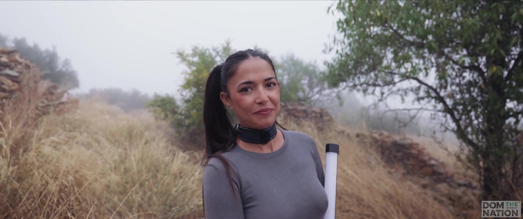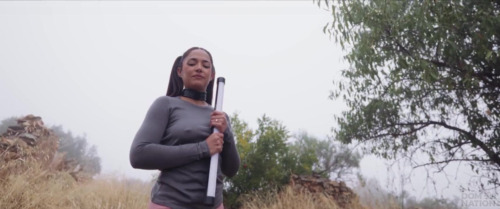 Charming Spanish female-dominator gets booty punished and bound up for piddle play by an olive grove