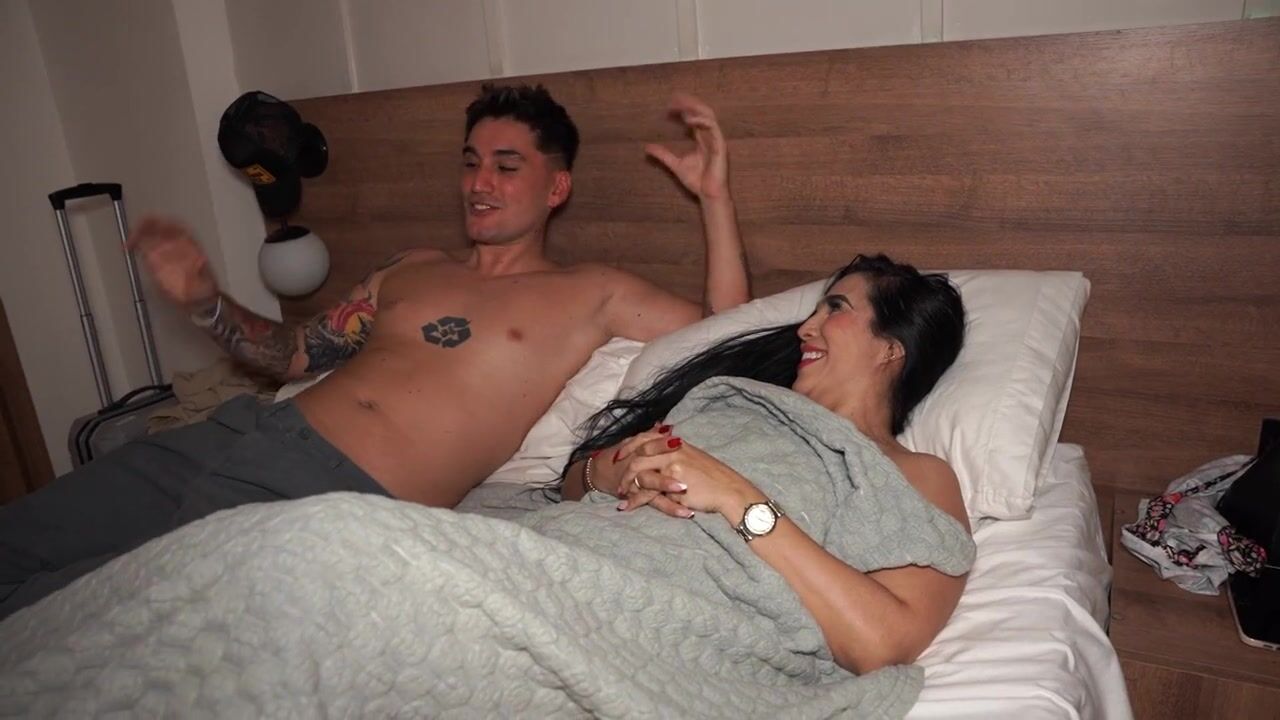 Large-bootied stepmom ends up in the same daybed with her stepson after a hotel mix-up