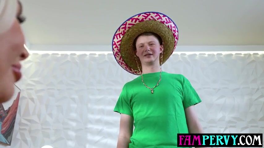 Large butt golden-haired stepmom twerking on her step sons bulky weenie