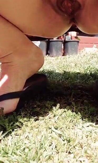 Lewd aged , see her gash gape as this babe squats in the garden
