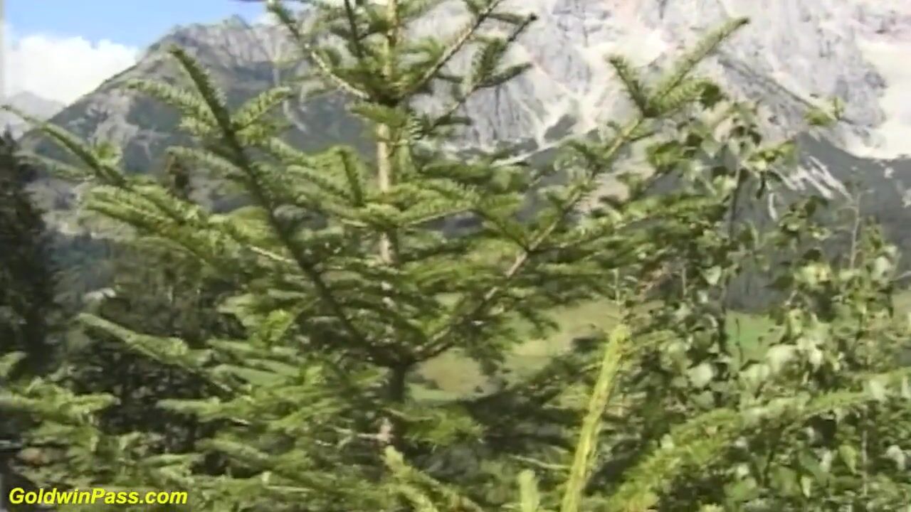 German pair bangs in front of the mountains