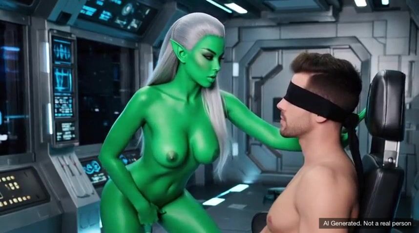 AI Generated Concupiscent Alien Playgirl Blindfolds Captive Boy in UFO - Interstellar Bang SciFi Dream