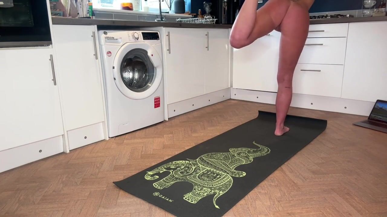 Bare Kitchen Yoga with View of My Flawless Butt