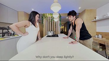 Stepmother receives unexpected sex in the kitchen with a giant inner spunk flow
