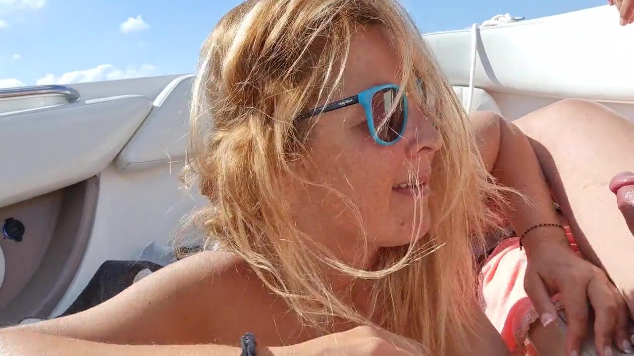 Rubia madurita muy caliente en el barco