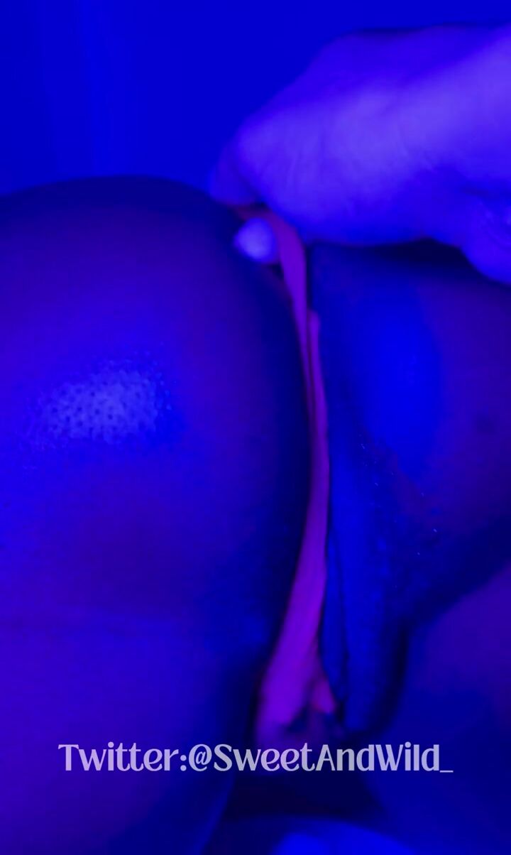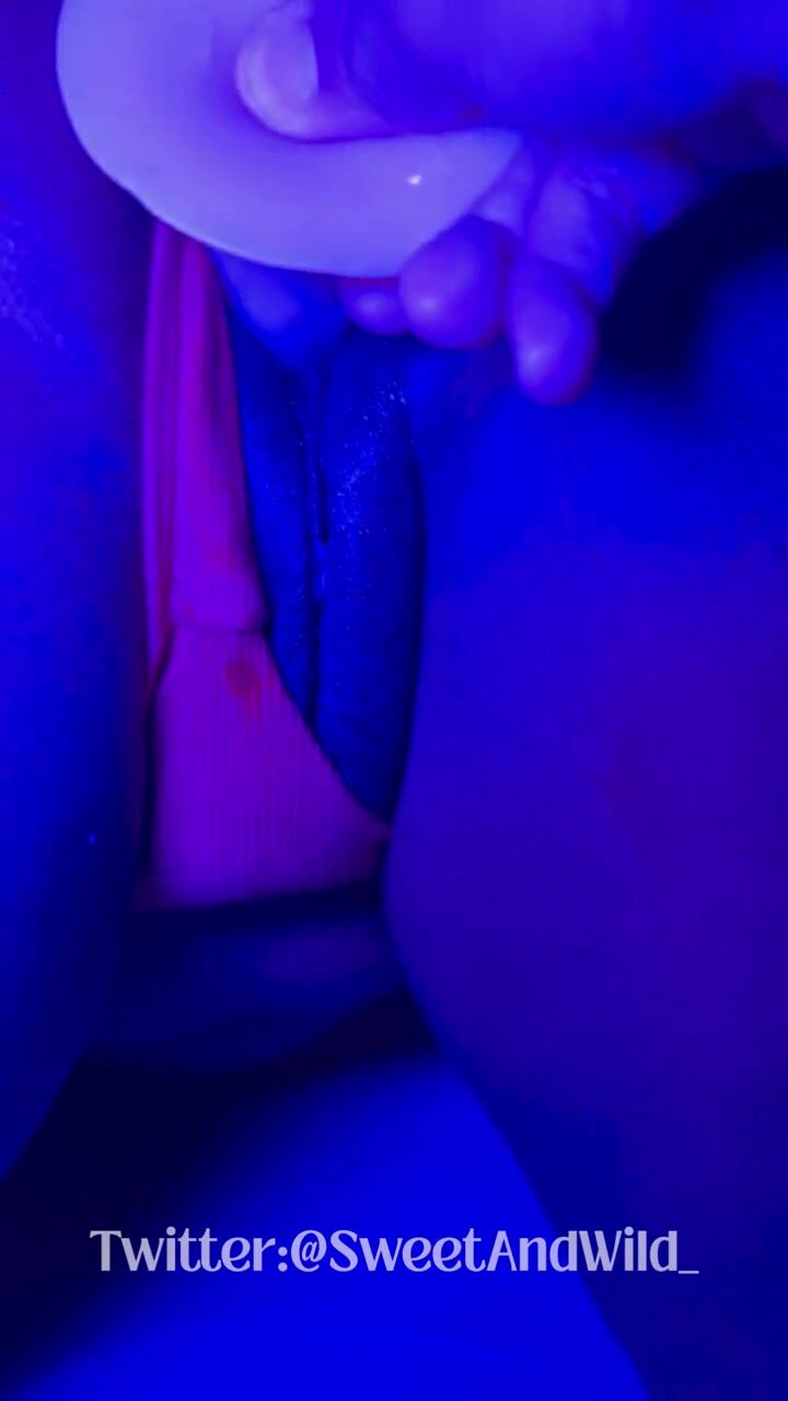 Black Female-dominator Trickling: Neon Belt & Sex tool Squirt