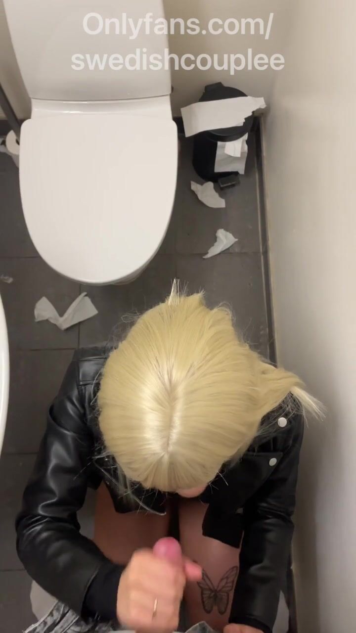 Blond beauty screwed loud in public washroom