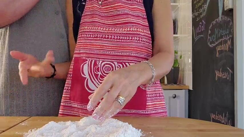 Sexy wife with astounding natural titties gets her twat filled whilst working in the kitchen.