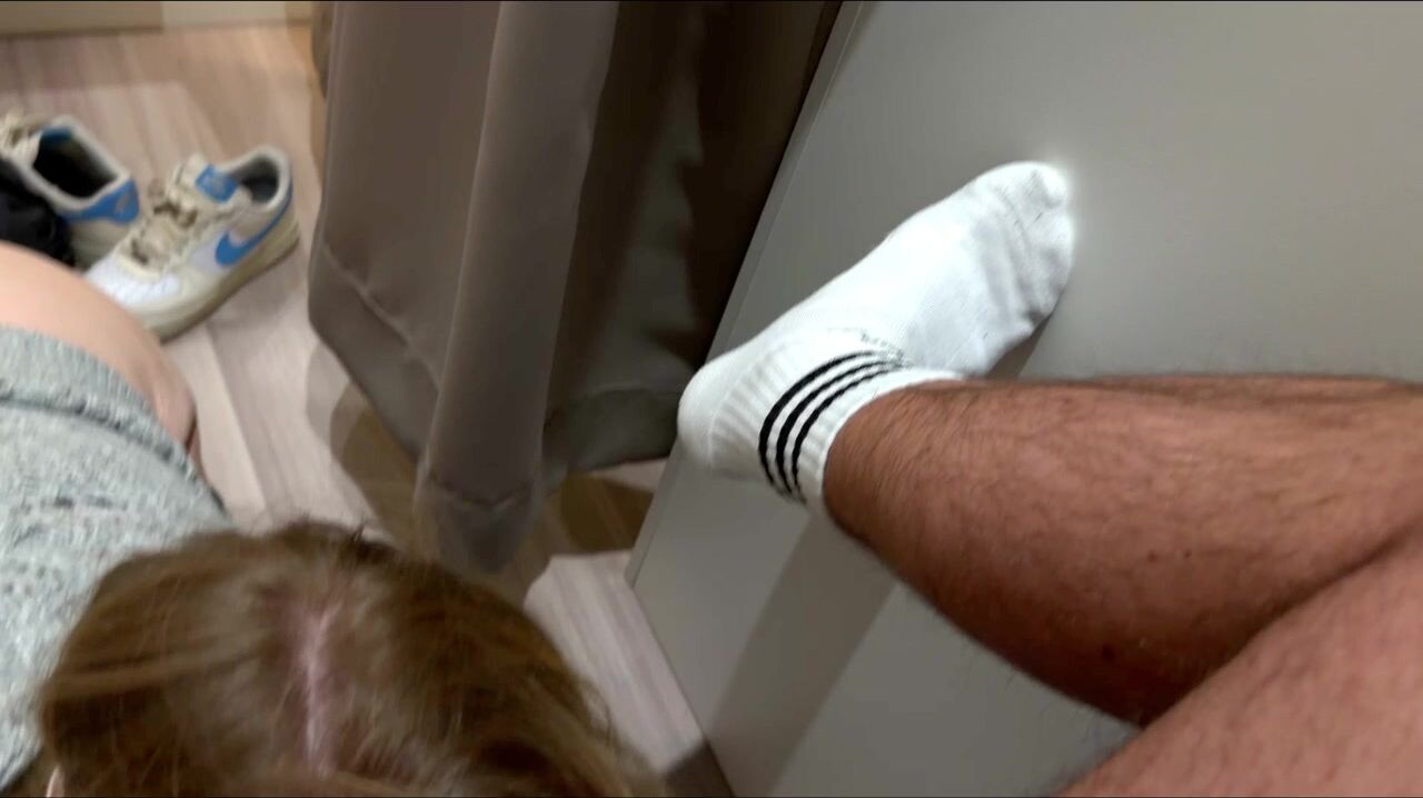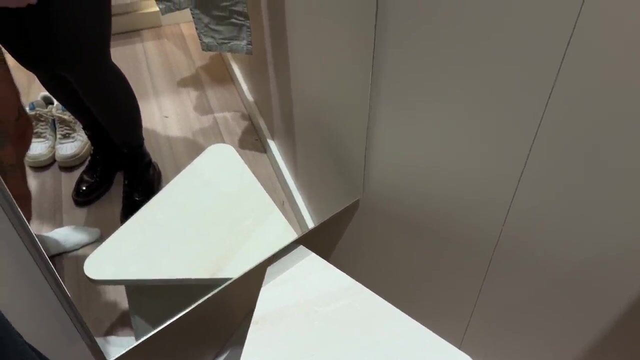 Risky public - Nasty gal plays with penis in the midst of garments store - Gets rewarded doggy in changing room
