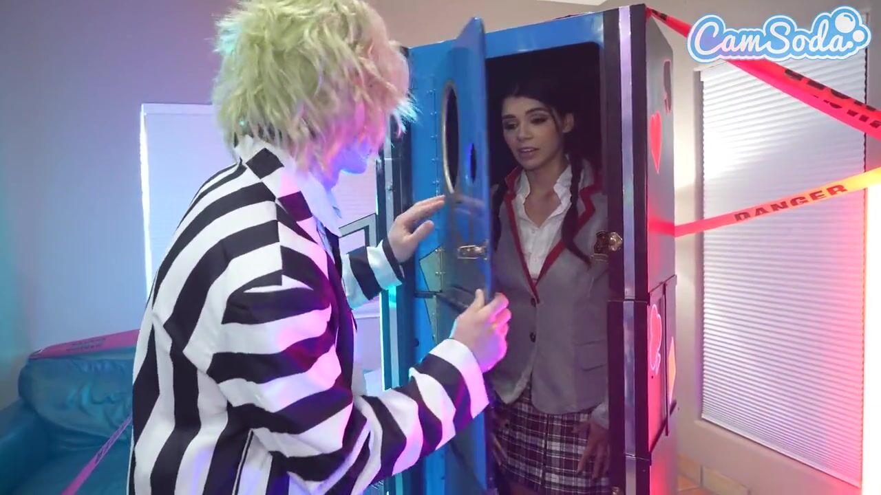 Cosplay 3some - Bettlejuice, Wednesday Addams and Her Large Breasts Stepmom