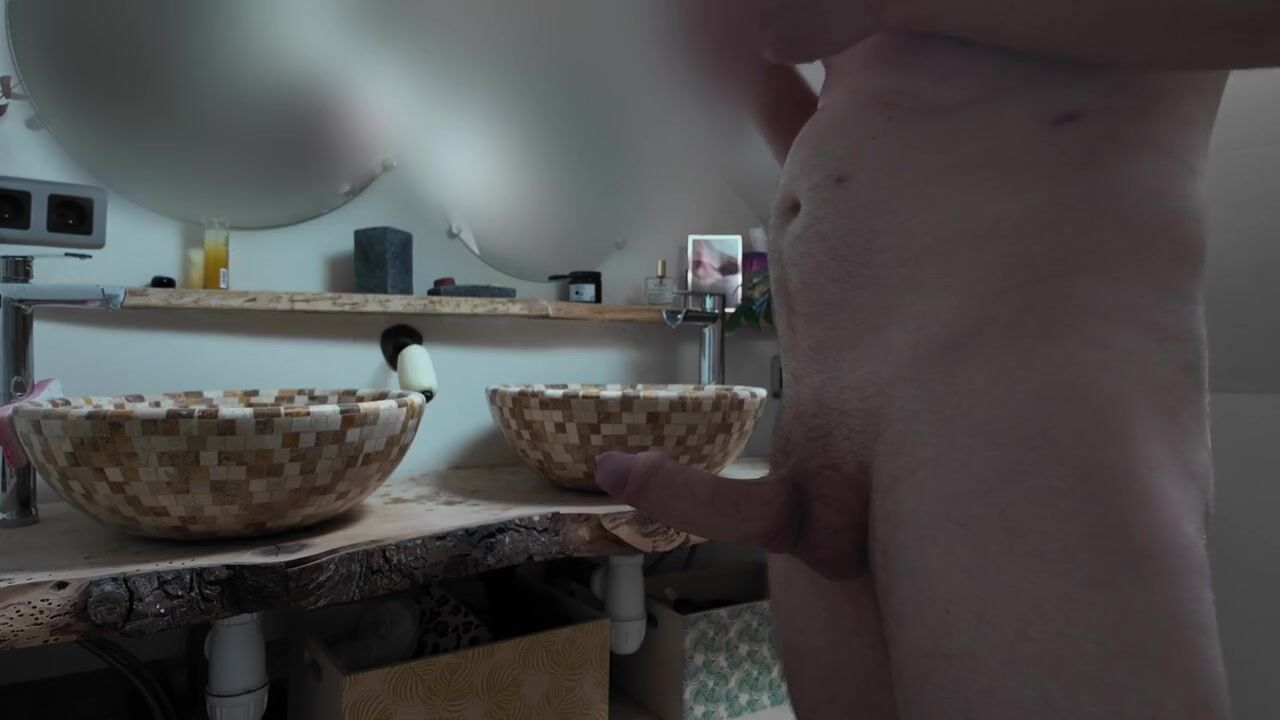 I stroke a large ramrod in the shitter