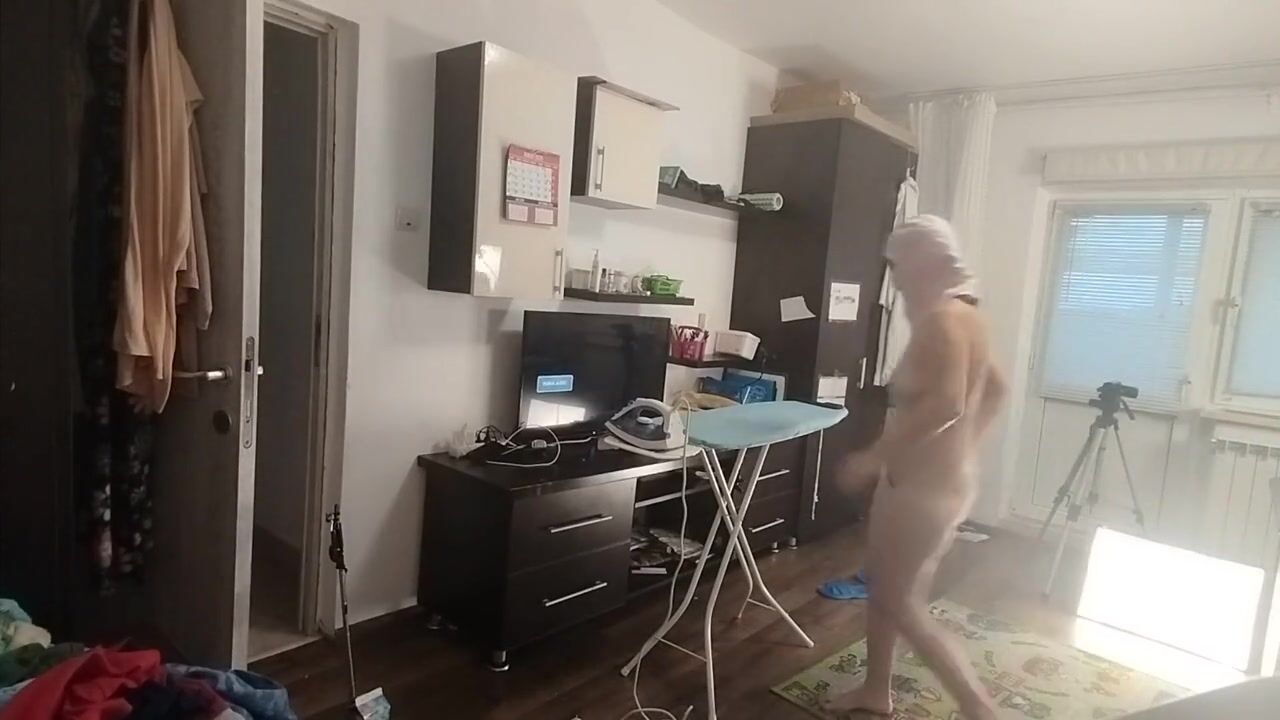 Hot Brunette hair Doing Stripped Chores Around the Abode